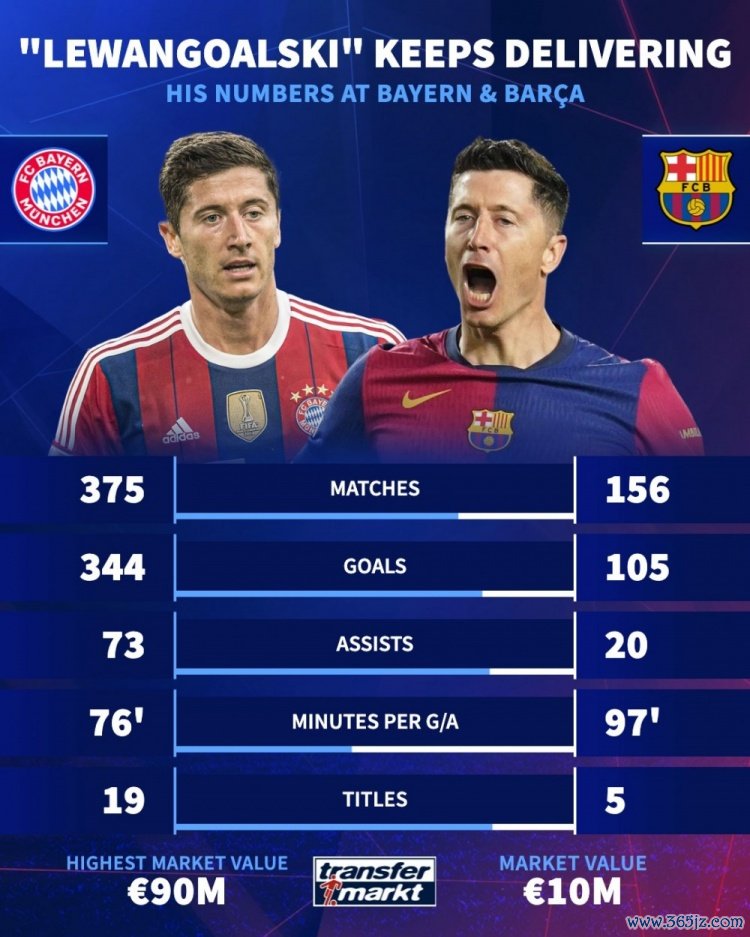 10月18日讯 莱万与巴萨的公约明夏到期,有媒体称巴萨不太可能与这位37岁的波兰前卫续约,德国转会商场统计了莱万在拜温暖巴萨的数据。