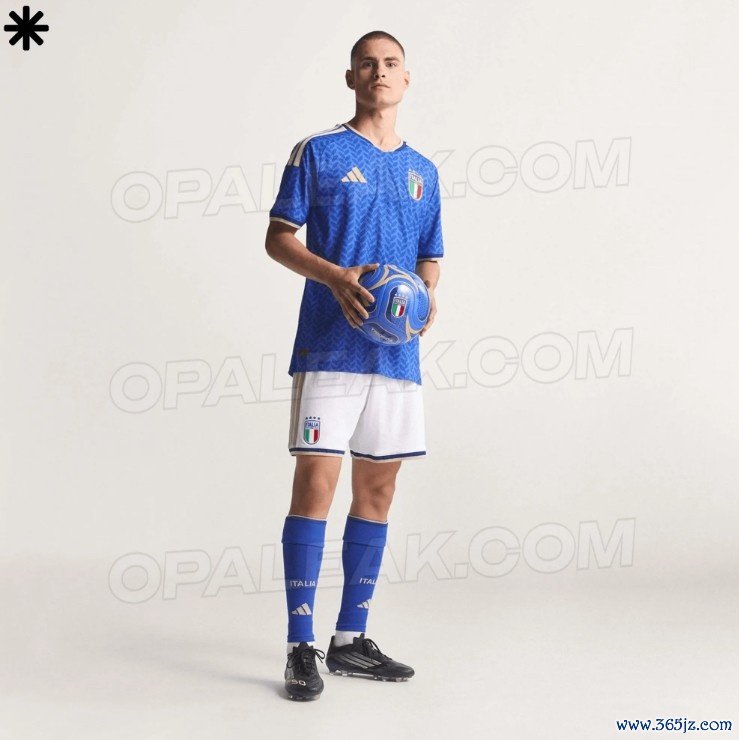 阿迪达斯象征性的加大版三条纹位于肩部,而阿迪达斯和意大利足协的徽章则禁受金色,凝视地隆起在蓝色底色上。