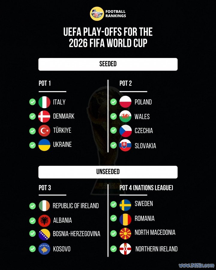 但与此同期,瑞典仍能依靠在欧国联中的收货弊端附加赛,争夺欧洲区终末的晋级寰宇杯正赛限额。雷同依靠欧国联收货晋级下一阶段的还有罗马尼亚、北马其顿和北爱尔兰,依照规章这四队将辞世欧预附加赛抽签中成为第四档球队。