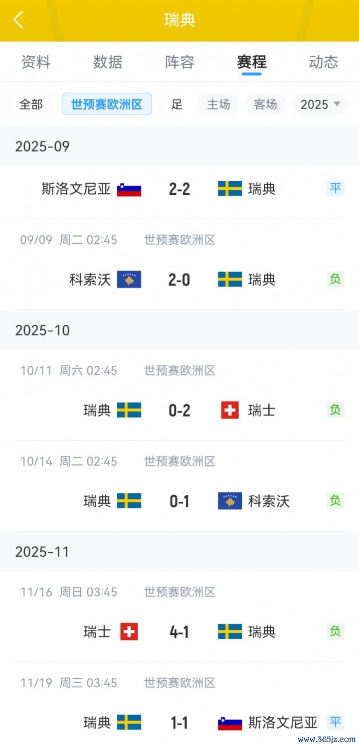 6场小组赛中,队内不乏球星的瑞典两次战平斯洛文尼亚,遭到瑞士和科索沃的双杀,只拿到2个积分。