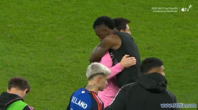 梅西本场1球3助,赛后第一时辰,梅西与辛辛那提球员交换球衣拥抱请安。