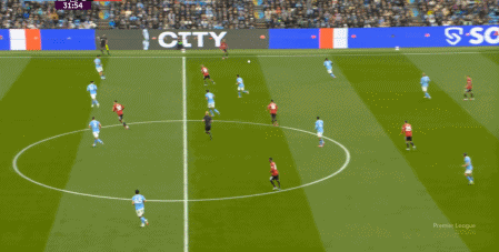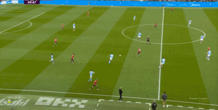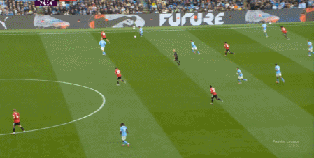 这一系列的推崇确乎让曼城感受到了些许的压力,是以在上半场末段,曼城也开动打得趋于保守,仅仅通过抢断和左肋的遑急,造成了两次压力的输出: