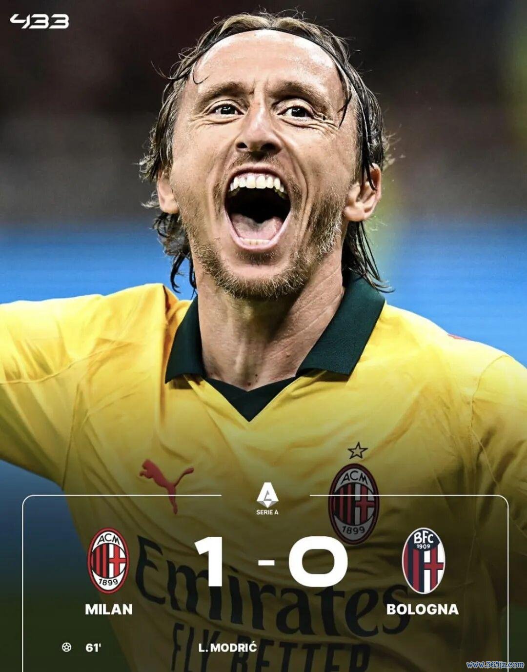 意甲第3轮,米兰主场迎战博洛尼亚,此役,凭借在第61分钟的进球,米兰在主场1-0打败敌手,成绩3分。