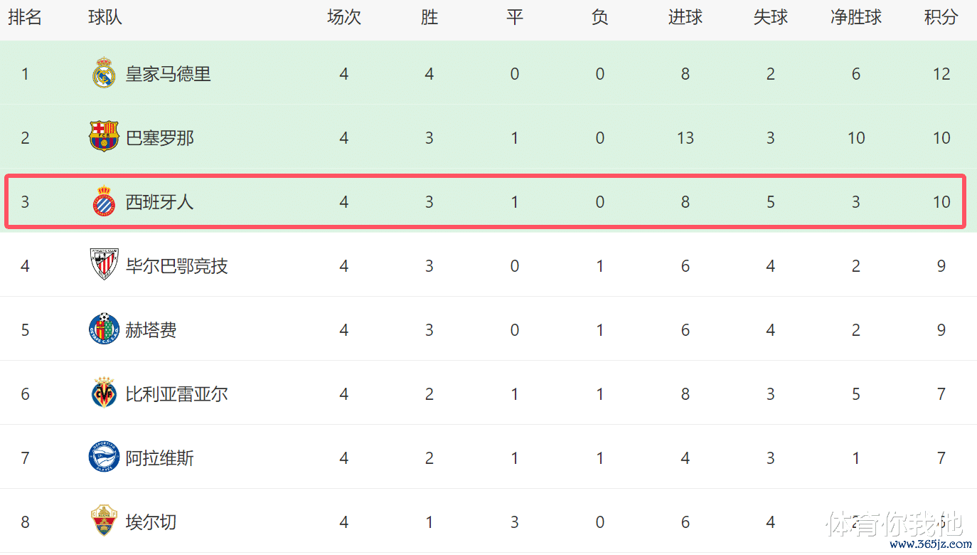 本场事后,西班经纪东说念主本赛季在前4轮比赛中,3胜1平保握不败,他们足足拿到了10分,现在积分仍是追平巴萨,名次西甲第三。关于西班经纪东说念主来讲,这号称古迹了。要知说念,上赛季西班经纪东说念主还在保级,本年夏窗他们被巴萨挖走了主力门将加西亚,球队在转会窗也莫得引进什么大牌球星,恶果他们却成为本赛季西甲最大的黑马。