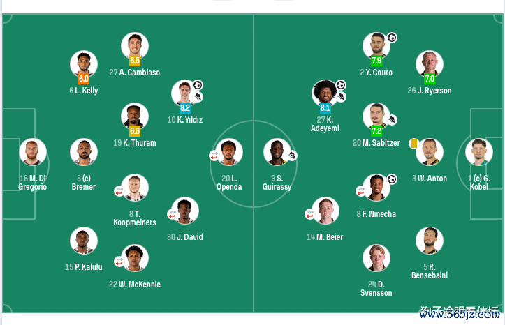 多特蒙德替补:33-迈尔、31-奥斯特津斯基、39-菲利波·马内、42-卡巴尔、13-格罗斯、17-丘库埃梅卡、37-科尔·坎贝尔。