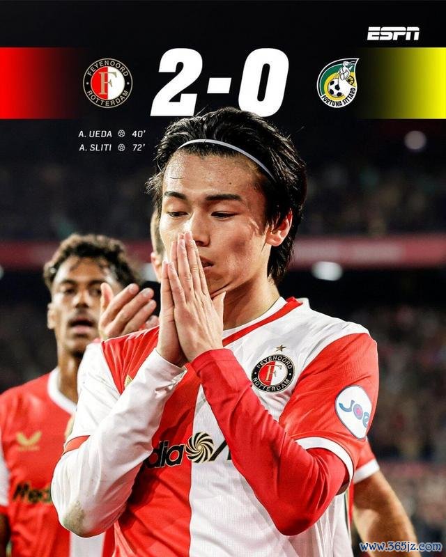 在荷甲第3轮补赛中,上田绮世再入一球助费耶诺德2-0福图纳锡塔德,而费耶诺德也以5战全胜领跑积分榜。