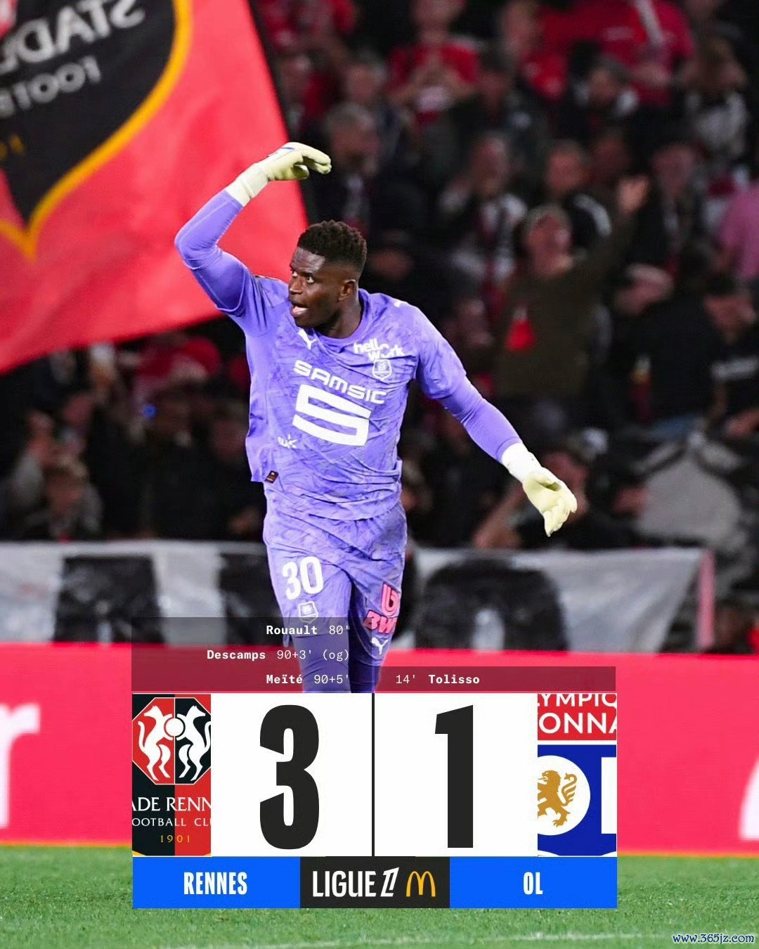 全场补时第5分钟,塔马里传中,梅特头球破门锁定胜局,雷恩3-1逆转里昂。
