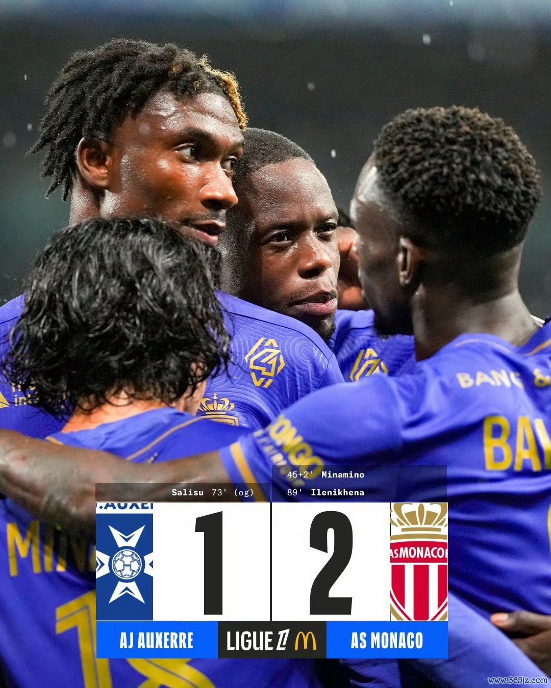 第90分钟,伊莱尼赫纳头球破门,摩纳哥2-1绝杀欧塞尔。