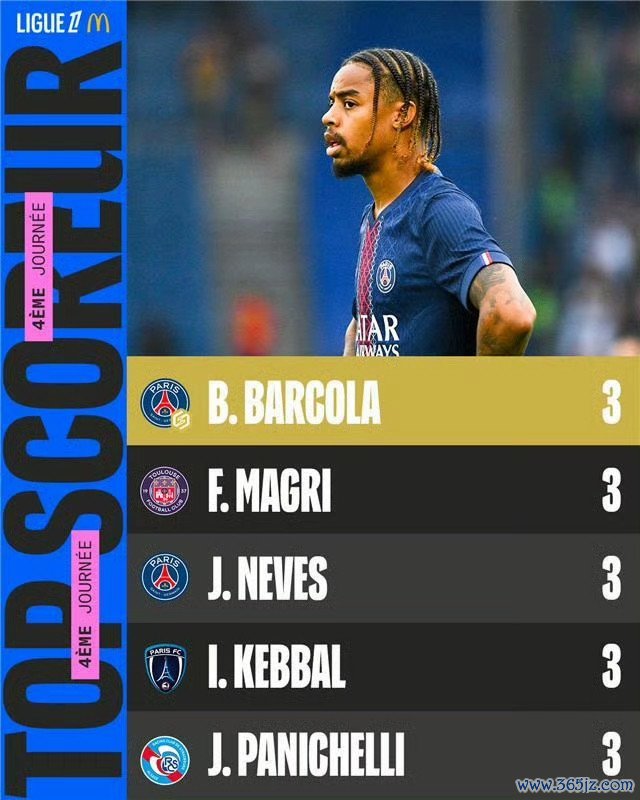 弓手榜方面,巴尔科拉、马格里、若昂·内维斯等东说念主构成的第一梯队也曾打进3粒进球。