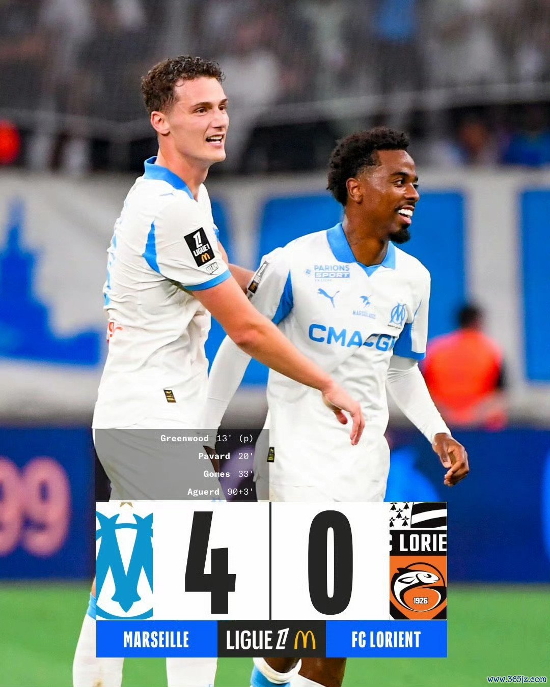格林伍德传射,三位新援斩获进球,马赛主场大捷十东说念主洛里昂