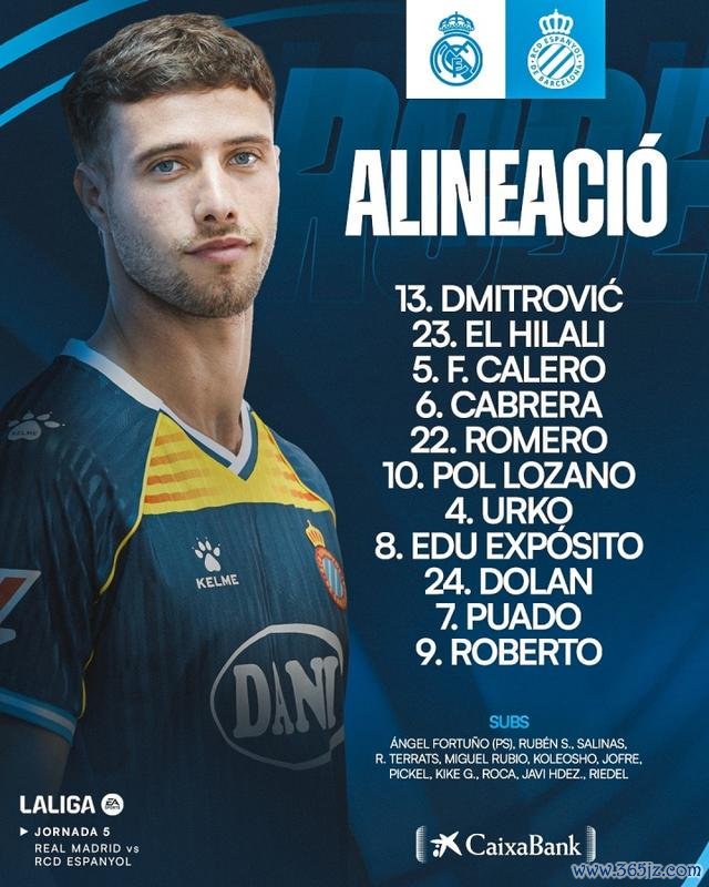 皇马首发:1-库尔图瓦、2-卡瓦哈尔、3-米利唐、17-劳尔-阿森西奥、18-A费、8-巴尔韦德、14-琼阿梅尼、30-马斯坦托诺、7-维尼修斯、10-姆巴佩、16-贡萨洛-加西亚