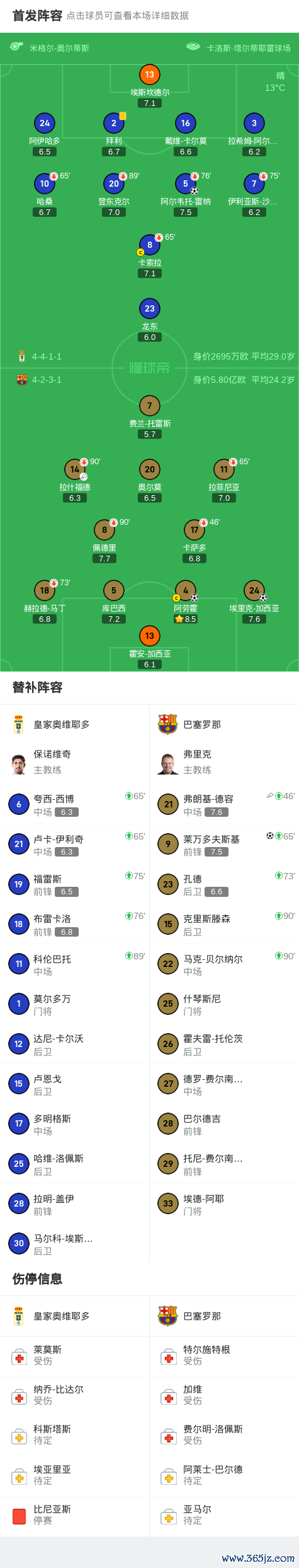 第34分钟,霍安-加西亚出击传球疏忽,雷纳吊射破门,巴萨0-1