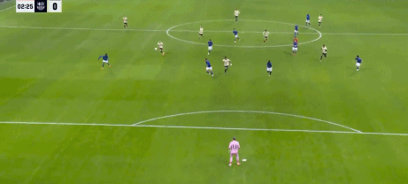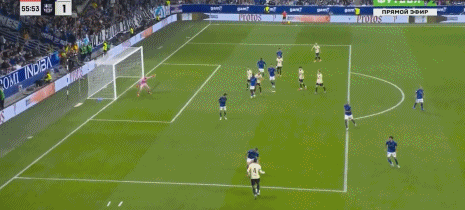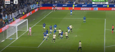 第3分钟,奥尔莫抽射,皮球稍微逾越
