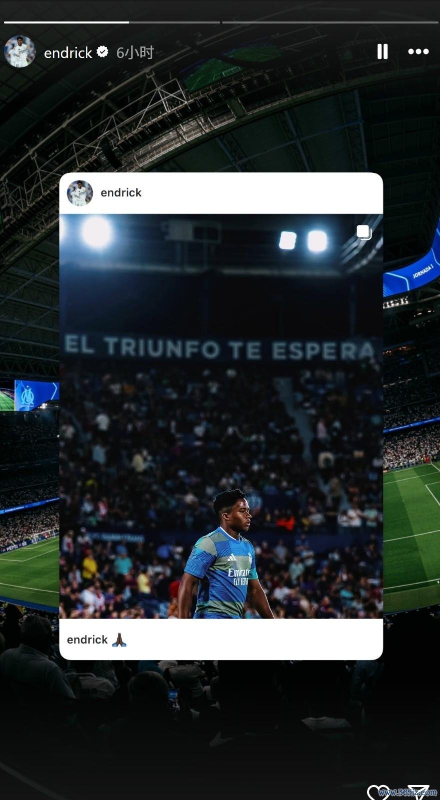 恩德里克在个东说念主酬酢媒体上更新的配图是伯纳乌球场的一块牌子,翰墨是成效在等你,也被外界认为是在向皇马表忠诚。