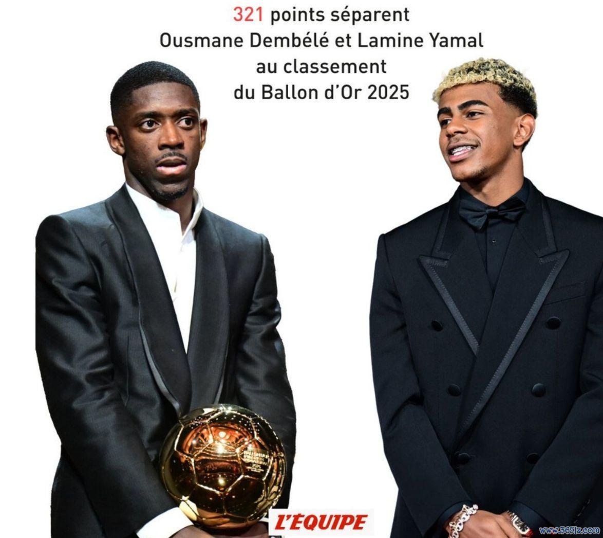 本周二凌晨,《法国足球》举办了金球奖的授奖庆典,28岁的登贝莱人心归向地封王登顶,而18岁的亚马尔则斩获第二名。经由4天的恭候后,外界终于见到了具体的得分情况。