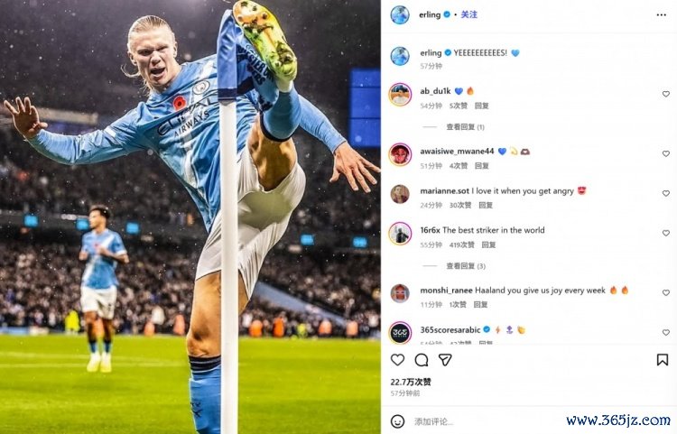 11月10日讯 曼城在本轮英超焦点战主场3-0完成功物浦,哈兰德在失点背面槌破门。