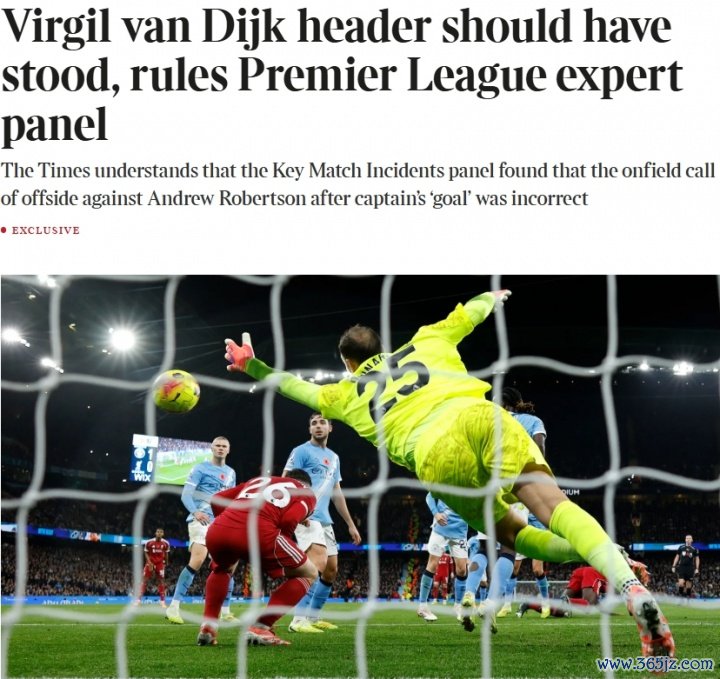 11月14日讯 英媒《泰晤士报》独家音尘,英超关节比赛事件小组(KMI)仍是裁定,上轮英超范戴克对曼城的进球应被判有用。