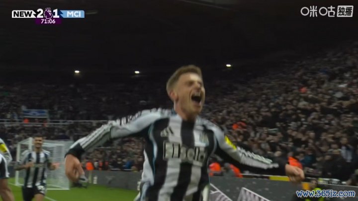 11月23日讯 曼城vs纽卡第71分钟,曼城禁区乱战,巴恩斯破门!双响了!此时比分变为纽卡2-1!