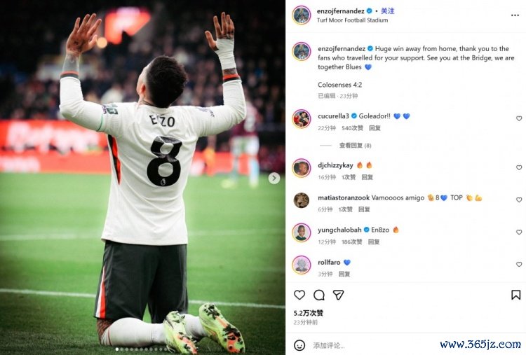 11月23日讯 切尔西在本轮英超2-0客场力克伯恩利,恩佐在比赛临了工夫为球队锁定胜局。
