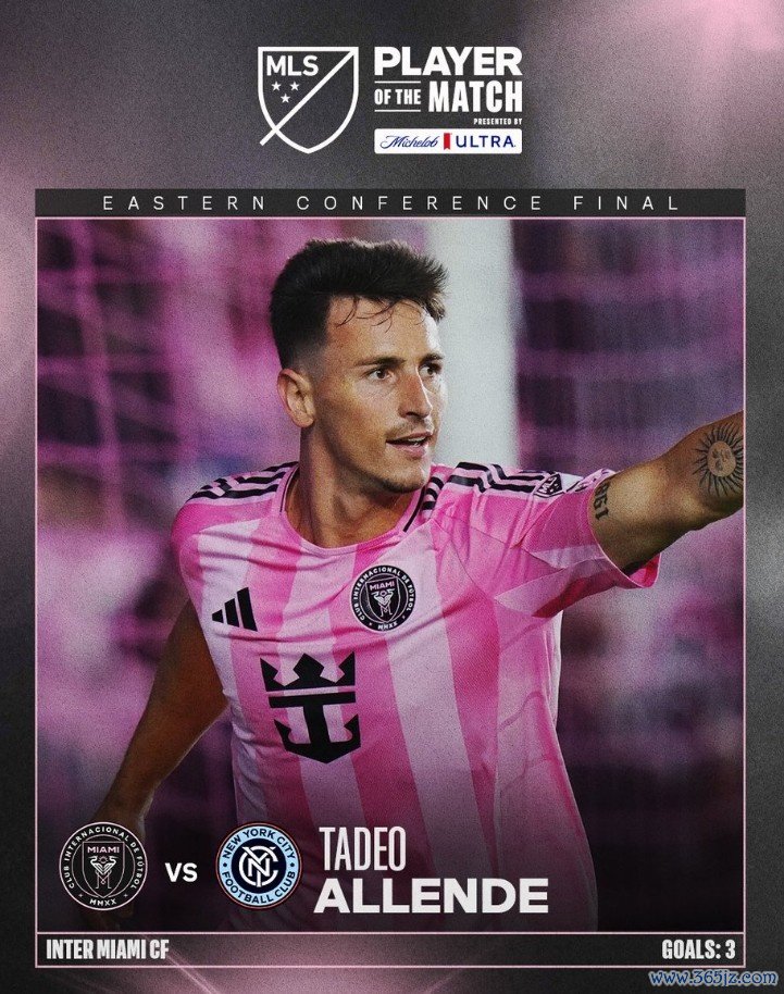 11月30日讯 迈阿密海外球员阿连德匡助球队以5-1大捷纽约城FC,况且打入了他办事糊口的第一个帽子戏法,追平了单赛季季后赛进8球的联赛记录。这场比赛也确保了迈阿密海外将在12月6日主场迎战西部冠军温哥华白帽队,争夺MLS杯冠军。